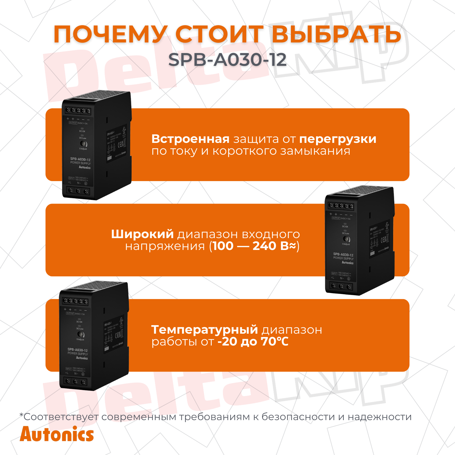 Блок питания Autonics SPB-A030-12, мощность выхода 30Вт, выходное напряжение 12V DC: сравнение цен, характеристики, фото, актуальное наличие и цены.