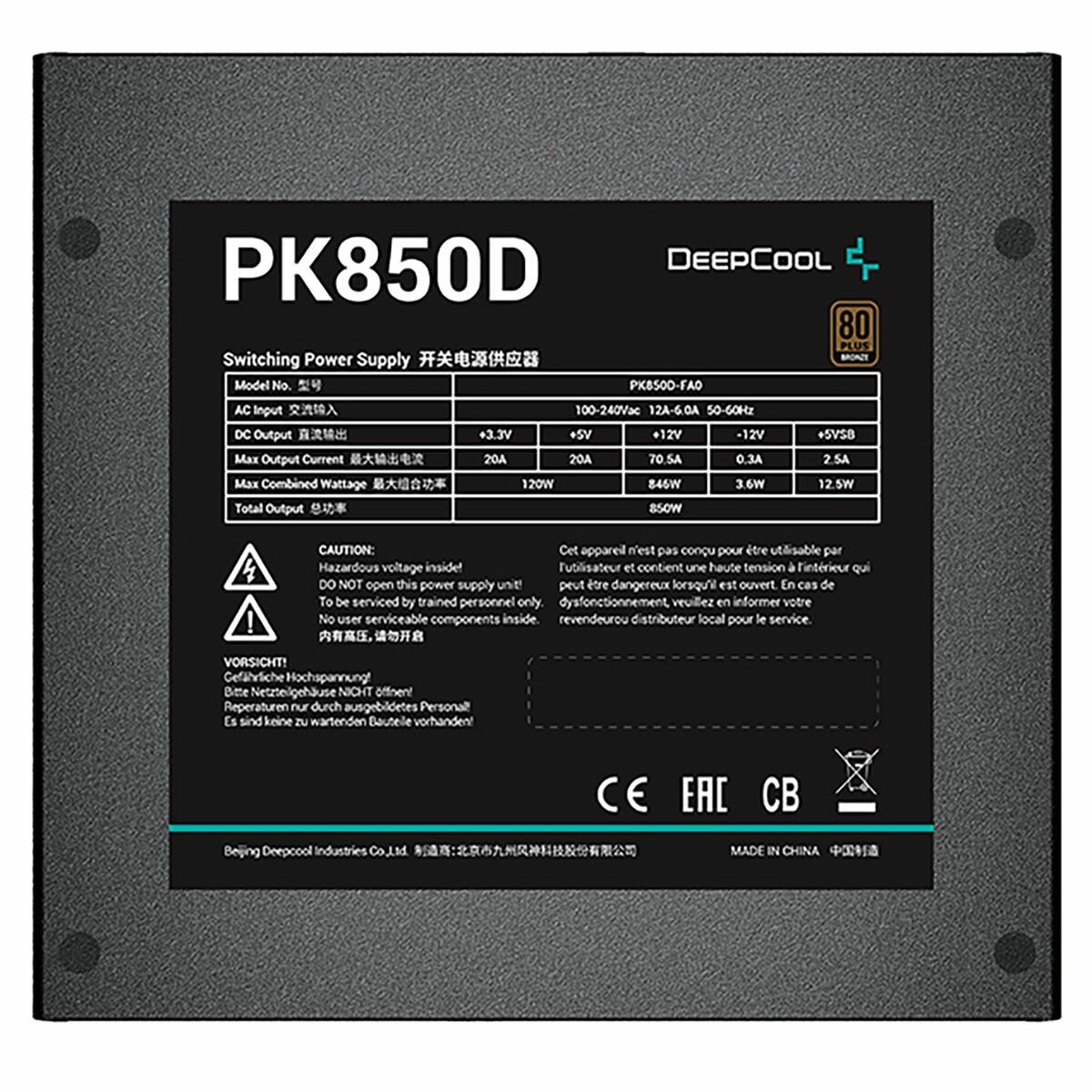Deepcool PK850D — это надёжный блок питания, который обеспечивает стабильное и эффективное электропитание вашего компьютера. Он оснащён сертификатом 80 PLUS Bronze, что гарантирует высокую энергоэффективность и снижение потерь мощности.