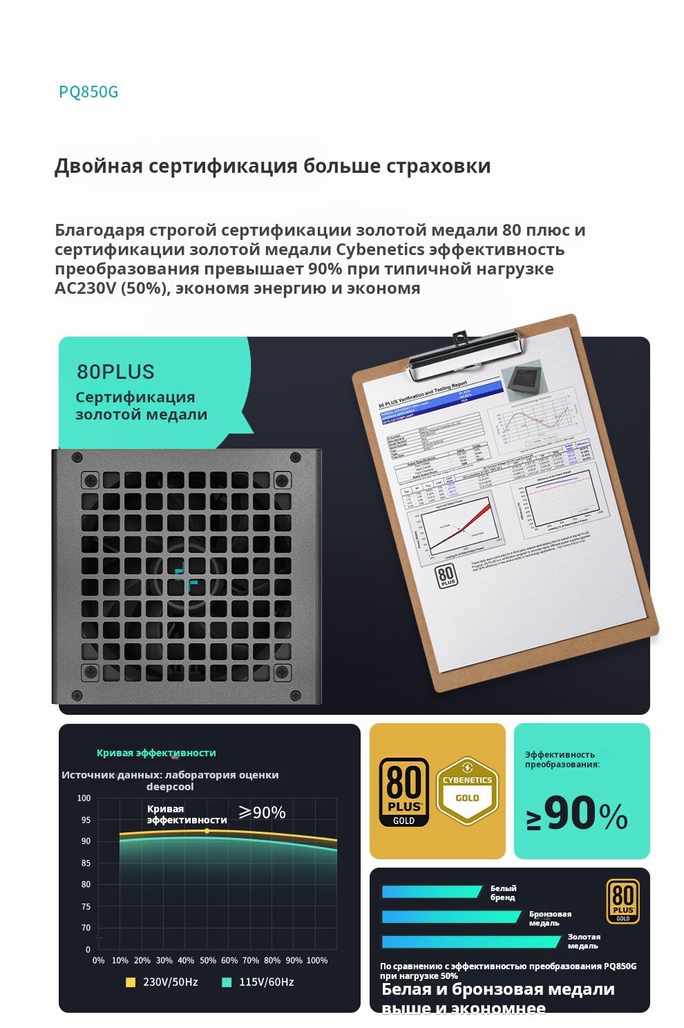DEEPCOOL PQ850G - это блок питания мощностью 850 Вт 80 PLUS Gold, сертифицированный ATX с высокой эффективностью и стабильностью. Идеально подходит для высокопроизводительных игровых ПК и рабочих станций. Ниже приведено введение в основные функции этого блока питания: