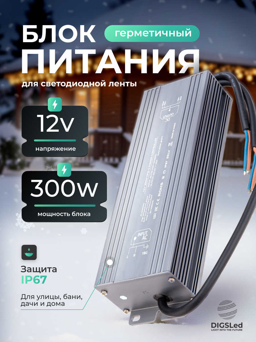 Купить Блок питания для светодиодной ленты 12V, 300W, IP67, 25А DIGSLED с доставкой по всей России. Блок питания для светодиодной ленты 12V, 300W, IP67, 25А DIGSLED: сравнение цен, характеристики, фото, актуальное наличие и цены.