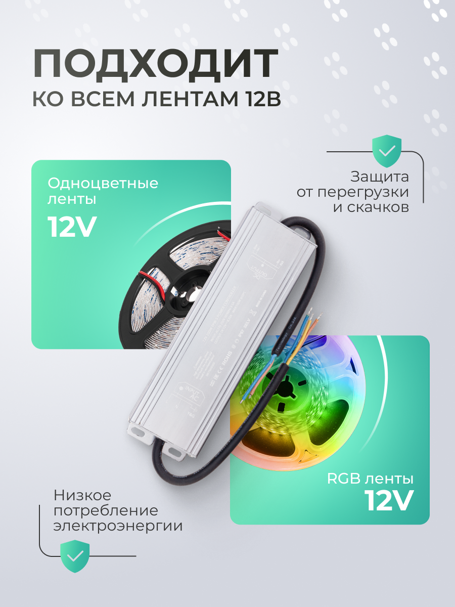 Приветствуем вас, уважаемые покупатели! Представляем вашему вниманию уникальное устройство - блок питания для светодиодной ленты. Не секрет, что светодиодные ленты являются популярным решением для освещения, декорирования и создания атмосферы в различных помещениях. Однако, чтобы ваша светодиодная лента работала безупречно и обеспечивала максимальную яркость и стабильность, необходим надежный и качественный блок питания, специально разработанный для светодиодных лент. Наш блок питания для светодиодной ленты - это именно то, что вам нужно! Благодаря передовым технологиям и профессиональному подходу, мы создали этот продукт, который обеспечивает стабильное и эффективное питание для светодиодной ленты. Блок питания светодиодной ленты имеет компактный размер и стильный дизайн, что позволяет его легко и незаметно интегрировать в любой интерьер. Блок питания на светодиодную ленту удобен в использовании и обладает высокой надежностью. Технические характеристики, включая мощность и напряжение, точно соответствуют требованиям светодиодных лент, обеспечивая максимальную эффективность и долгий срок службы. Кроме того, блок питания для светодиодных лент предлагает множество преимуществ. Он обладает энергоэффективностью и малым нагревом, что способствует экономии электроэнергии и повышает безопасность его использования. Благодаря низкому уровню электромагнитных помех, ваша светодиодная лента будет работать бесперебойно, не вызвавая помех в другой электронной аппаратуре. Безопасность и надежность - вот основные принципы, на которых основан наш блок питания для светодиодной ленты. В дополнение ко всему, наш продукт имеет привлекательную цену, что делает его доступным для любого бюджета. Покупая блок питания для светодиодной ленты у нас, вы можете быть уверены в качестве и надежности этого изделия.