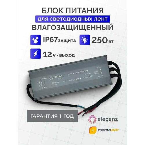 Купить Блок питания для светильника Eleganz, 12В, 250 Вт, IP67 с доставкой по всей России. Блок питания для светильника Eleganz, 12В, 250 Вт, IP67: сравнение цен, характеристики, фото, актуальное наличие и цены.