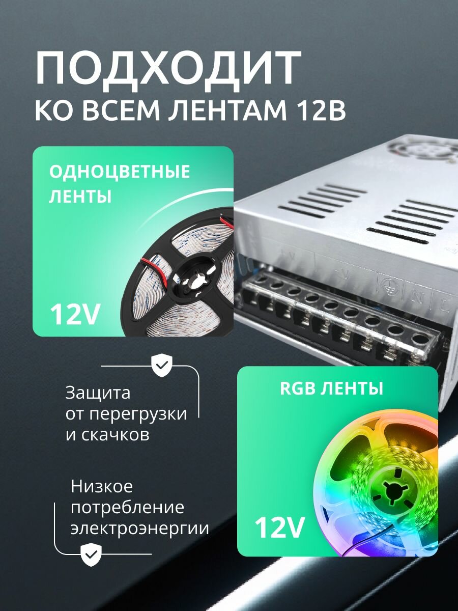 Блок питания для светодиодной ленты влагозащищенный 12V, 250W, IP20, 20.8A DIGSLED