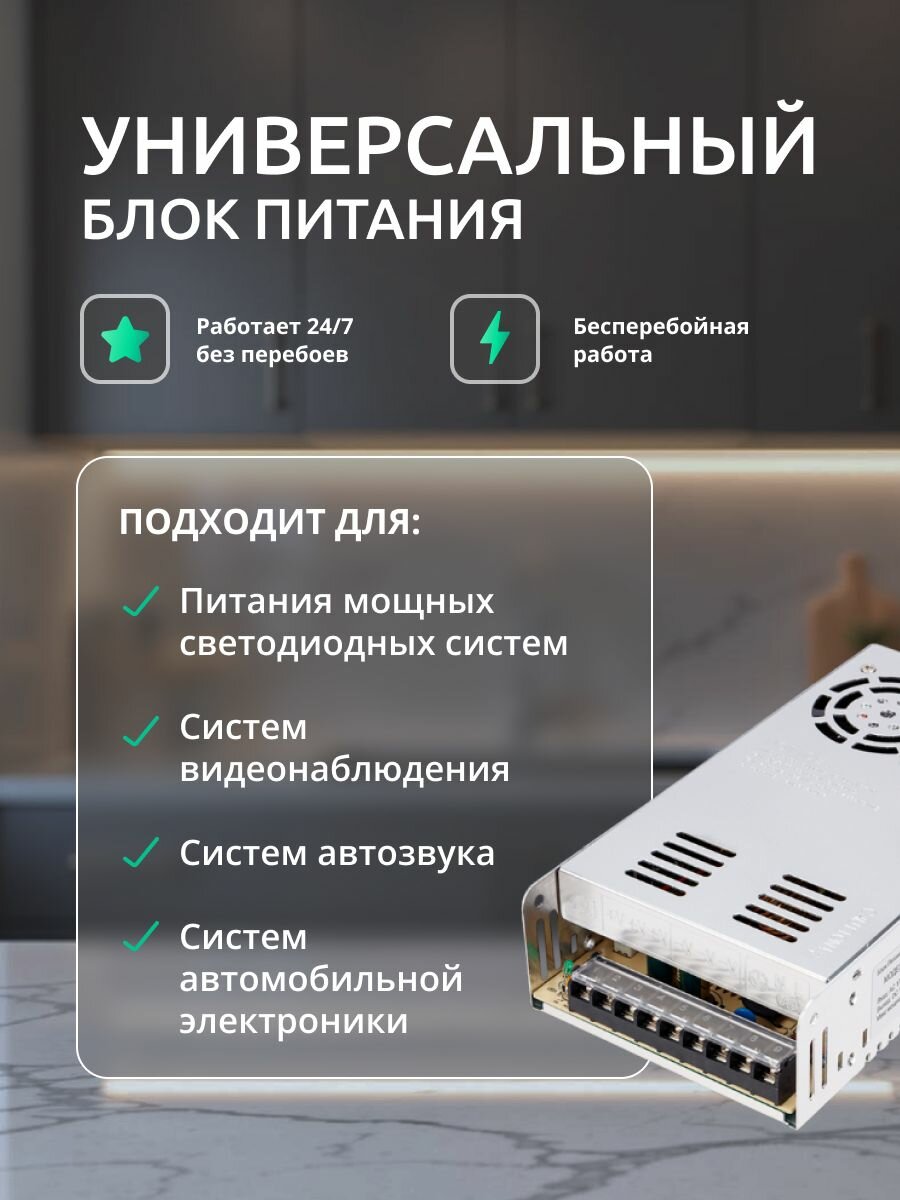 Блок питания для светодиодных лент 24V, 300W, 12.5A, IP20 Standart DIGSLED, импульсный источник питания