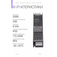 Блок питания для светодиодной ленты 200Вт, 24В, 8.3А, IP20, Альфа Свет