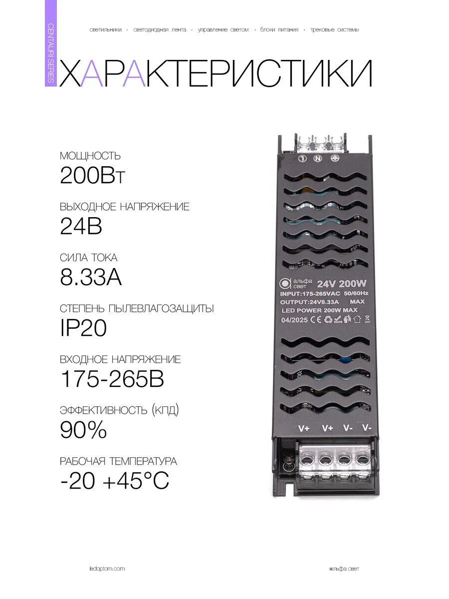Блок питания для светодиодной ленты 200Вт, 24В, 8.3А, IP20, Альфа Свет: сравнение цен, характеристики, фото, актуальное наличие и цены.