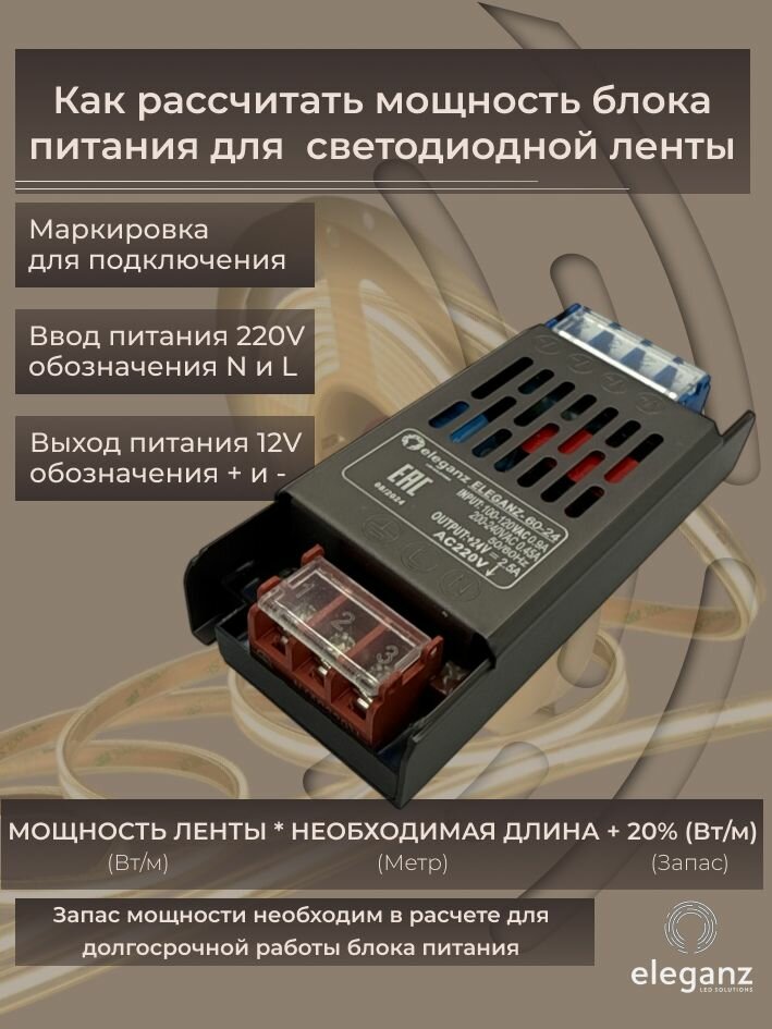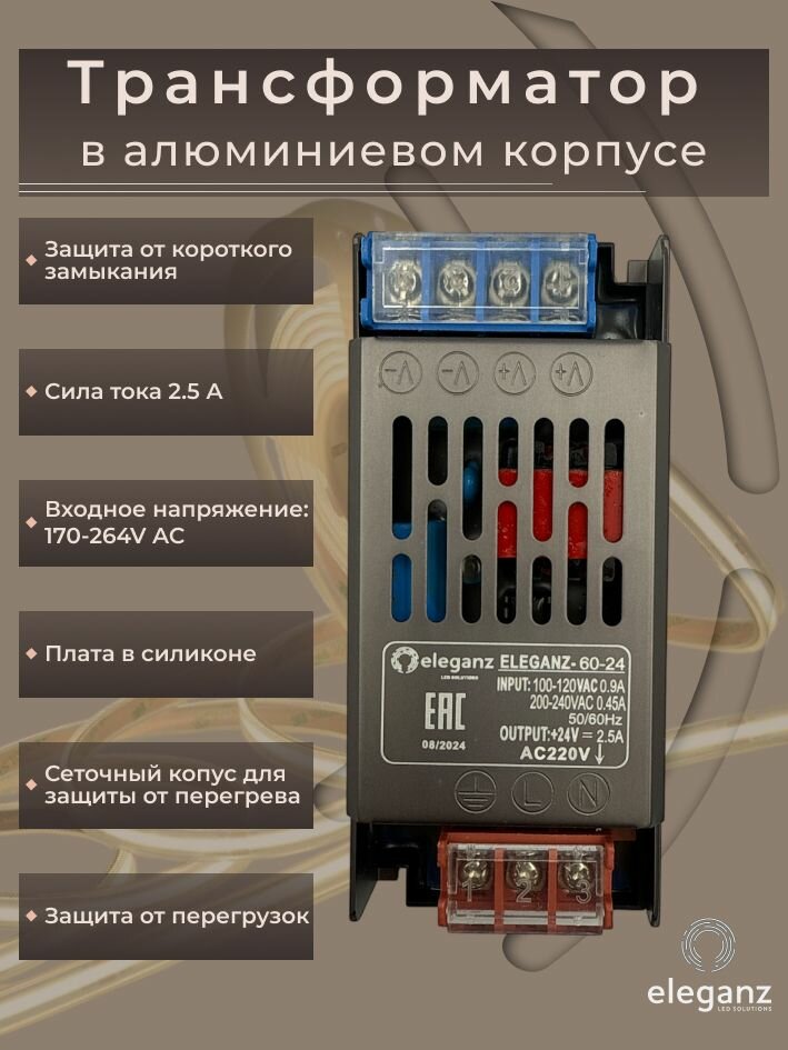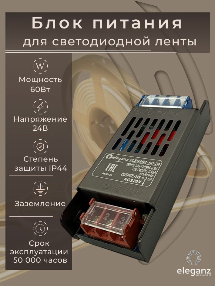 Блок питания для светодиодной ленты 24V «Eleganz 60W», IP44 1шт.: сравнение цен, характеристики, фото, актуальное наличие и цены.