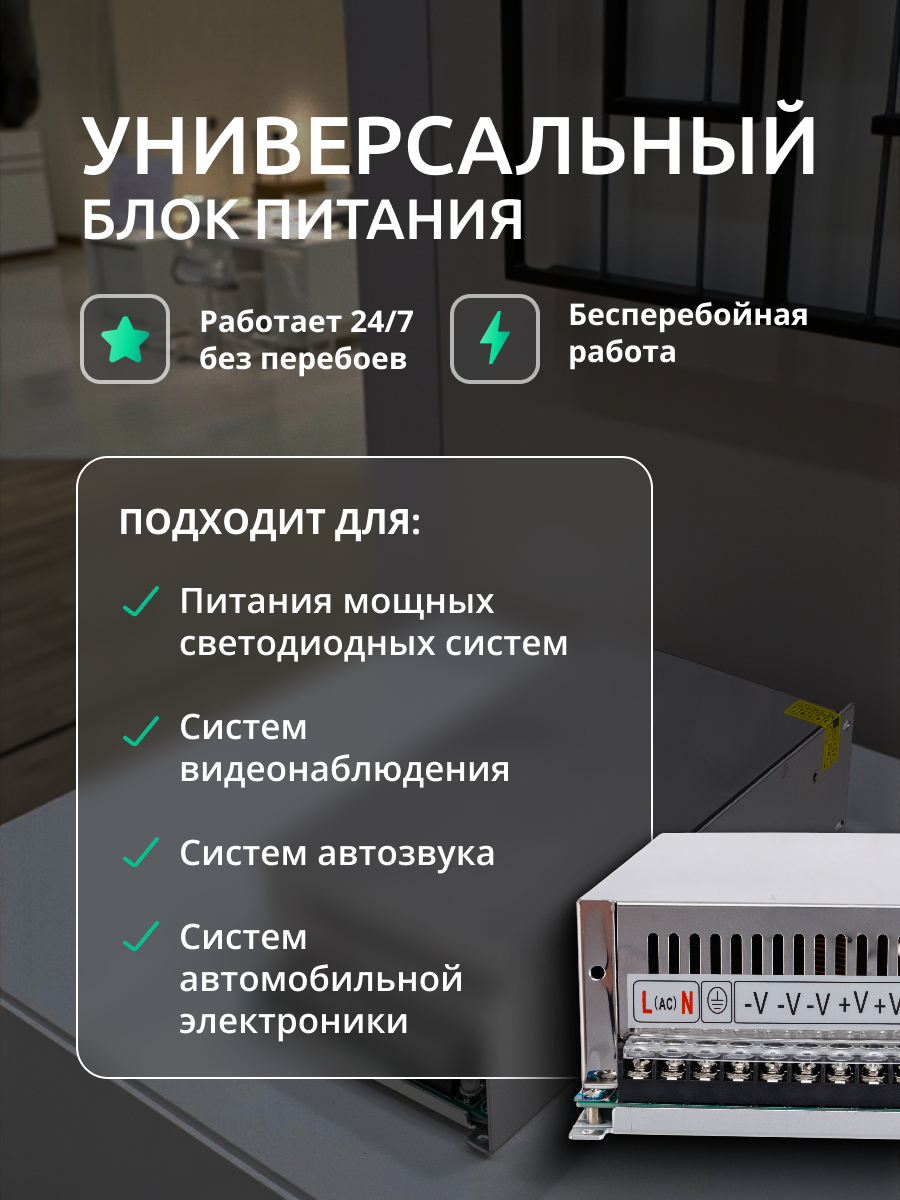 Блок питания для светодиодных лент 24V, 300W, 12.5A, IP20 Standart DIGSLED, импульсный источник питания