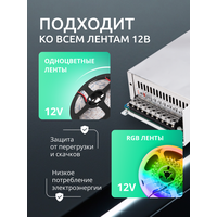 Блок питания для светодиодной ленты влагозащищенный 12V, 250W, IP20, 20.8A DIGSLED
