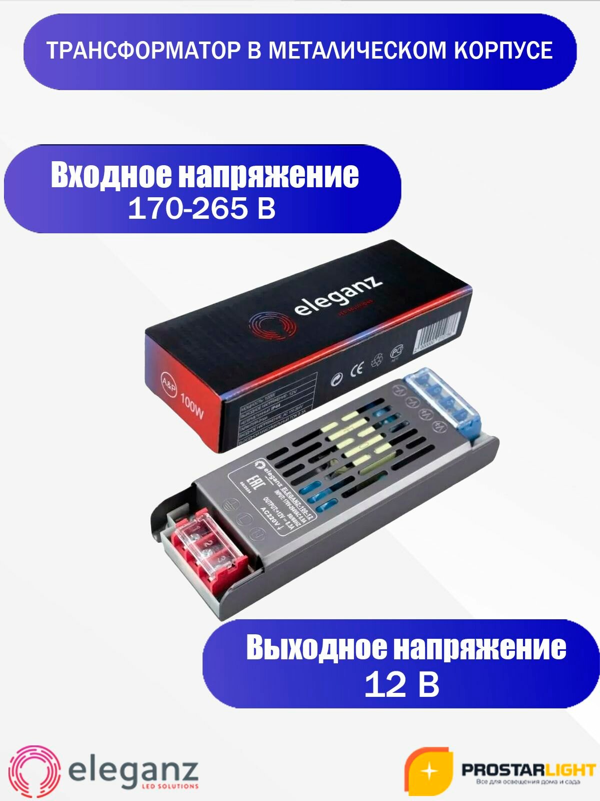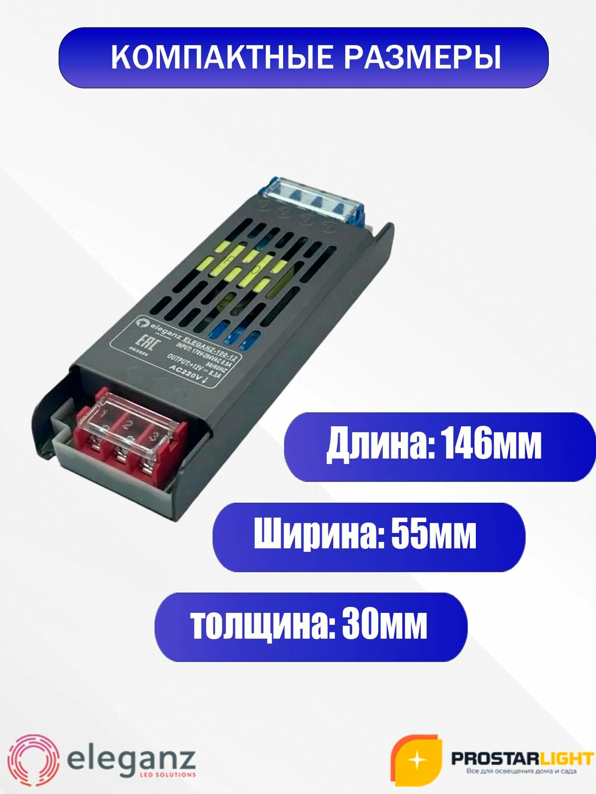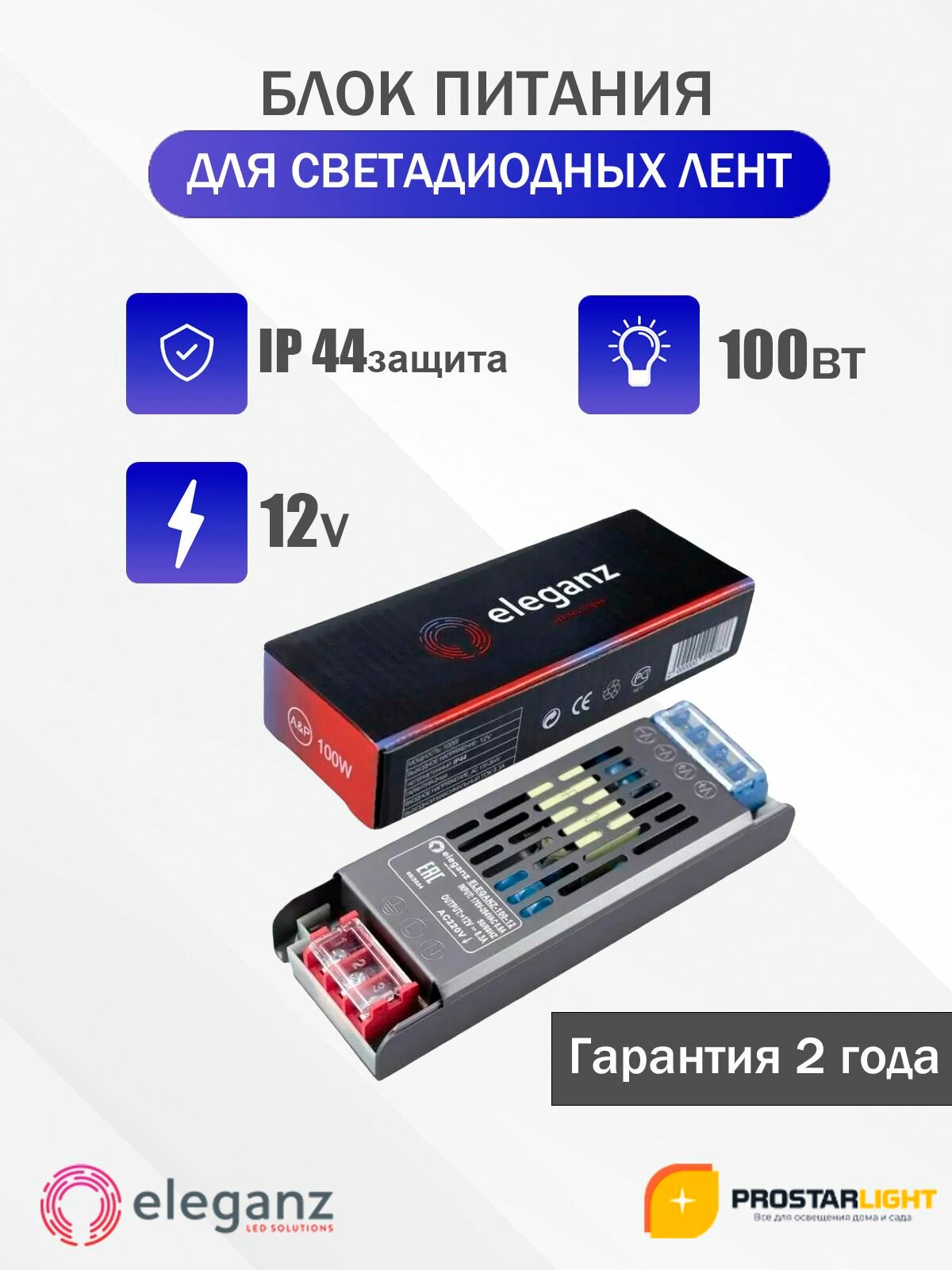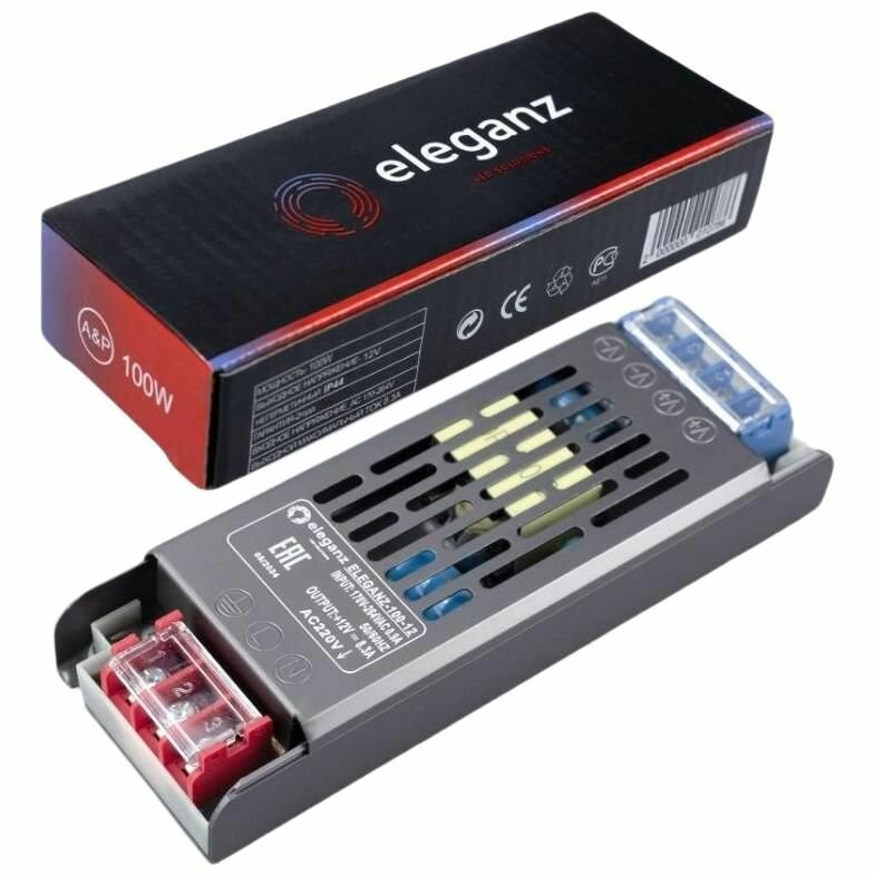 Блок питания для светодиодной ленты Eleganz, 12В, 100 Вт, IP44: сравнение цен, характеристики, фото, актуальное наличие и цены.