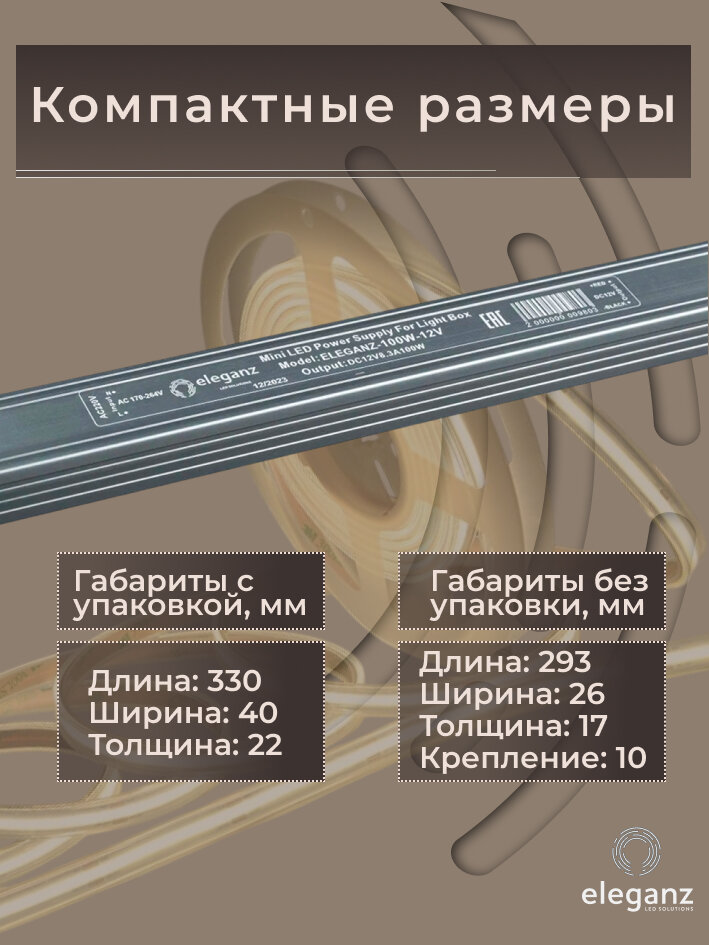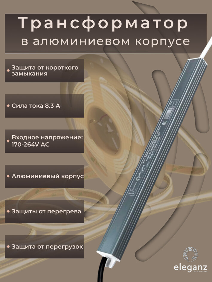 Блок питания для светодиодных лент 12v (карандаш) «Eleganz 100w», трансформатор для ленты, IP20: сравнение цен, характеристики, фото, актуальное наличие и цены.