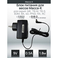 Блок питания для весов Масса-К для серии МК, ТВ-М, ТВ-S (9V 500mA). Также адаптера питания подходит к весам предыдущих поколений ВЭМ, ВА, 4D, PP4D, RA, RC.