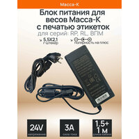Блок питания для весов Масса-К с печатью этикеток. Адаптер подходит для современных моделей Масса-К RP, RL и предыдущей ВПМ (24V 3000mA).