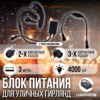 Купить Блок питания до 4000LED 3 м 3-х контактный с контроллером, черный, для гирлянд системы DINAMIC с доставкой по всей России.