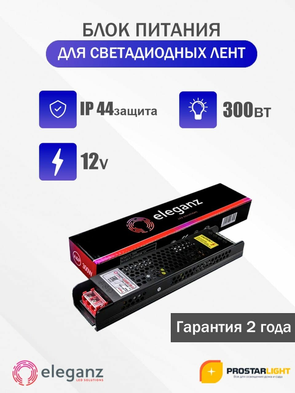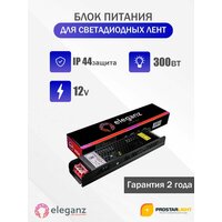 Купить Блок питания Eleganz, 12 V, 300 W, IP20, металлический корпус, серебристый с доставкой по всей России.