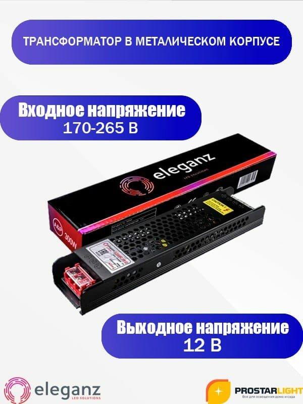 Блок питания Eleganz, 12 V, 300 W, IP20, металлический корпус, серебристый: сравнение цен, характеристики, фото, актуальное наличие и цены.