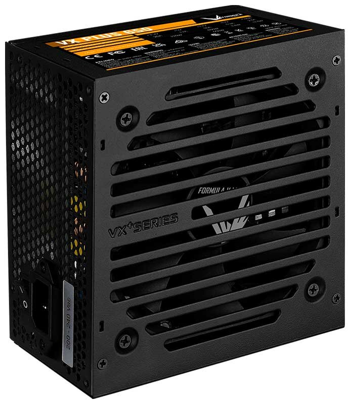 Блок питания Formula черного цвета AC VX PLUS, ATX, мощность 650W, питание МП (20+4pin), питание видеокарты 2х(6+2) pin, 4xSATA, размер вентилятора 120мм, RTL (VX-650 PLUS)