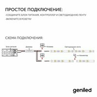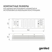 Блок питания Geniled GL-12V100WM20 slim стабилизирован по напряжению 12В, имеет высокий КПД. Предназначен для интерьерного использования.
