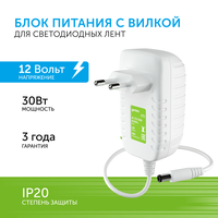 Купить Блок питания для светодиодной ленты с вилкой 30W 12V 2,5А IP20 с доставкой по всей России. Блок питания для светодиодной ленты с вилкой 30W 12V 2,5А IP20: сравнение цен, характеристики, фото, актуальное наличие и цены.