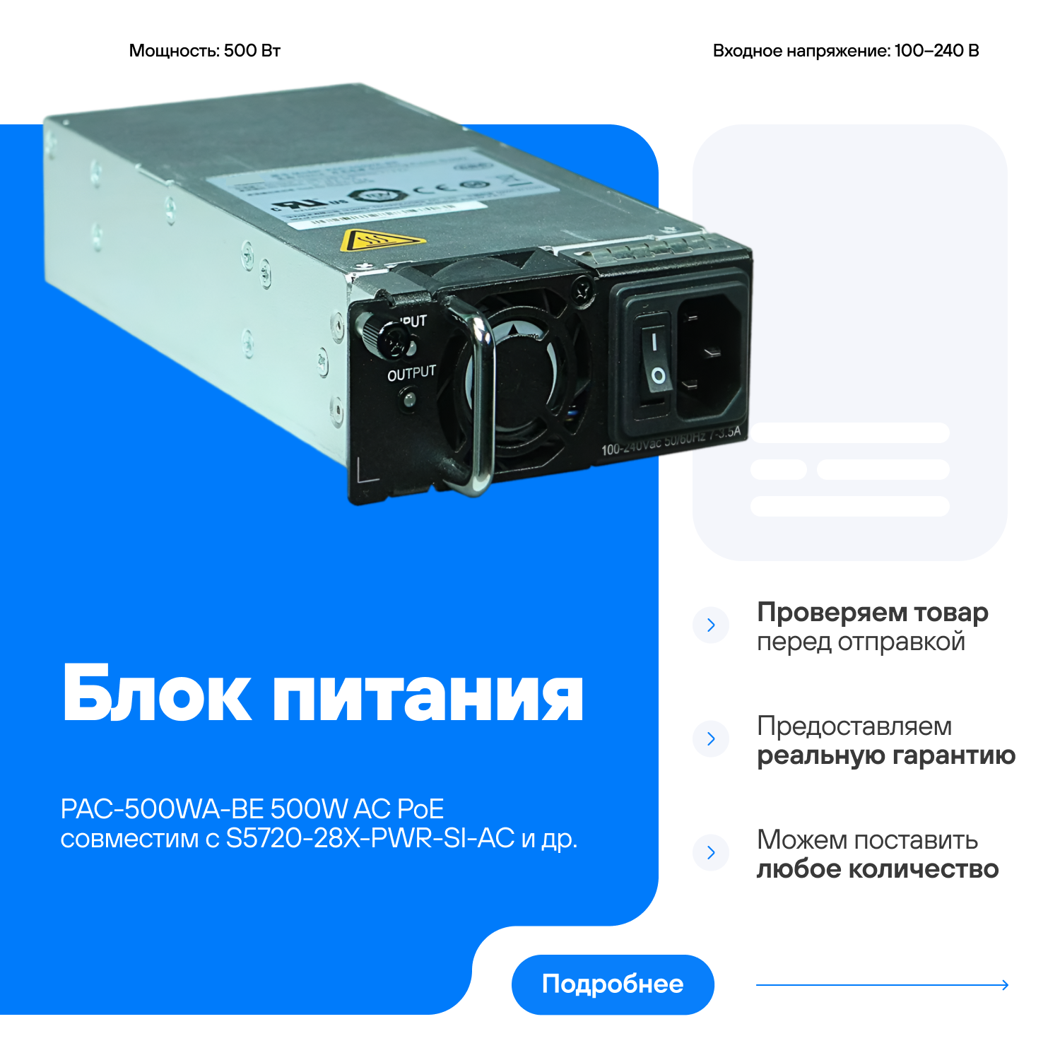 Купить Блок питания Huawei PAC-500WA-BE 500W AC PoE с доставкой по всей России. Блок питания Huawei PAC-500WA-BE 500W AC PoE: сравнение цен, характеристики, фото, актуальное наличие и цены.