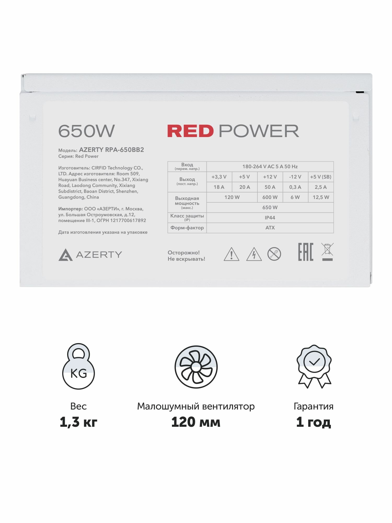 Купить Блок питания компьютера Azerty RPA-650BB2 (650 Вт) с доставкой по всей России.
