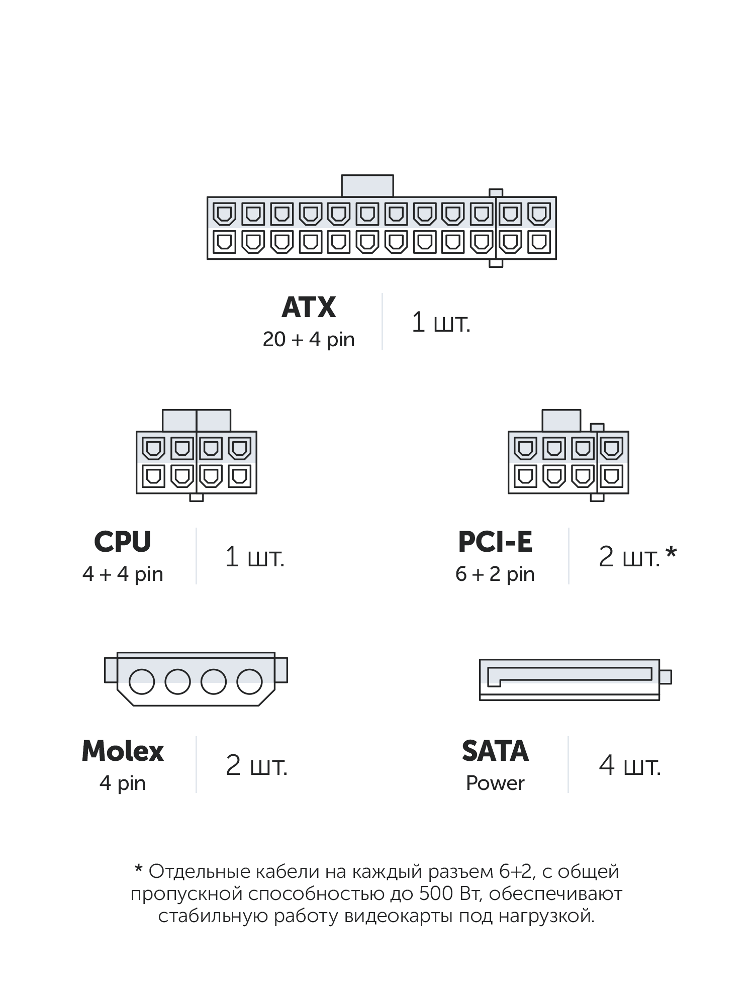 | Количество разъемов 6+2-pin PCI-E | 2 |