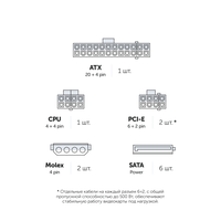 Эффективное охлаждение компонентов и низкий уровень шума достигаются благодаря использованию радиаторов с большой площадью ребер и встроенного вентилятора типоразмером 135х135 мм с регулируемой скоростью вращения. Чтобы свести к минимуму потери энергии в устройстве установлена несъёмная электропроводка с сечением проводов не менее 18AWG. Оптимизированы длина жгутов и количество разъёмов: 6 – SATA, 2 – Molex и 2 восьмиконтактных (6+2) разъёма для подачи питания на видеокарту.