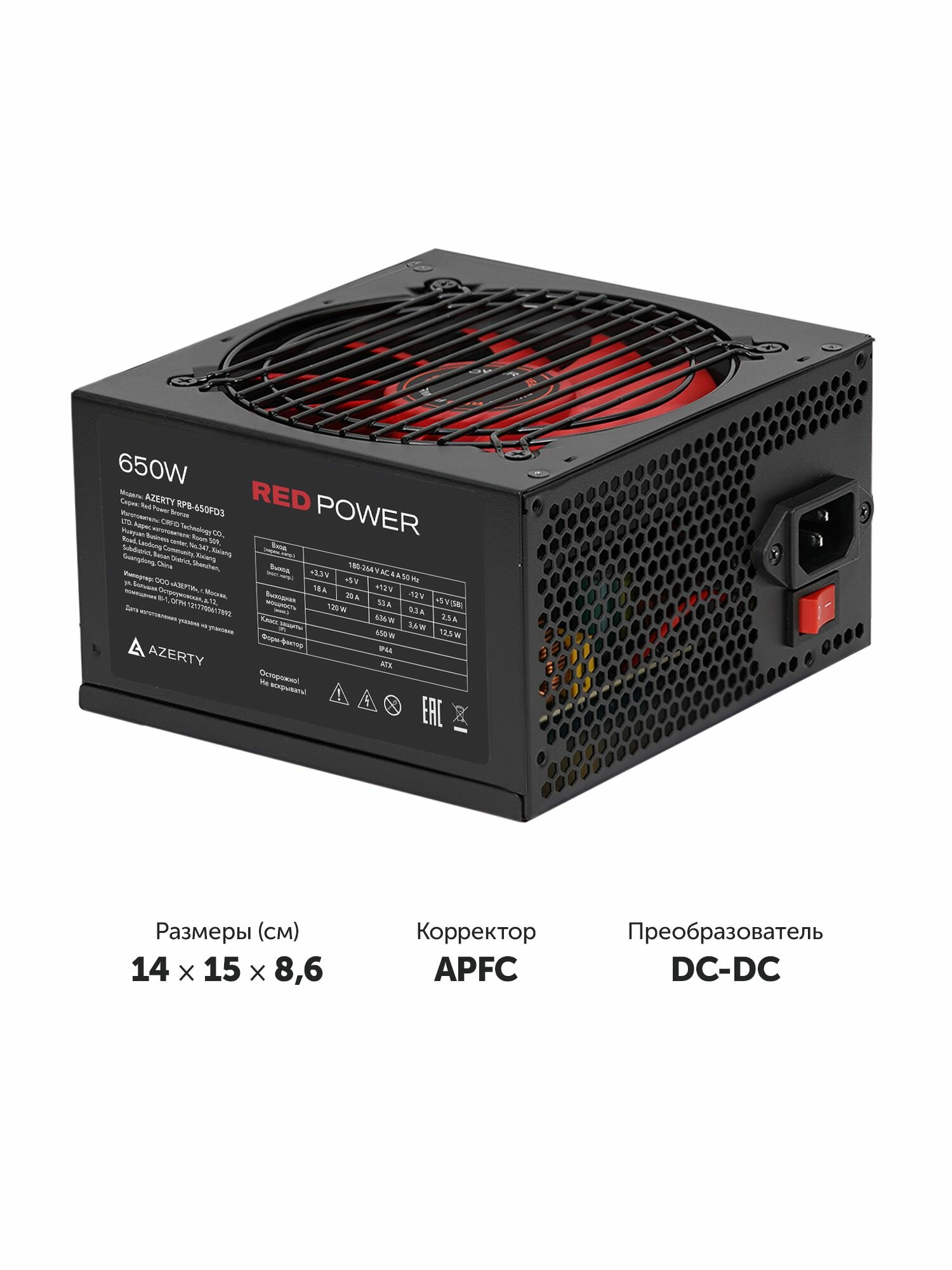 Блок питания для ПК Azerty RPB-650FD3 предлагает максимальную мощность более 650 Вт W . Данный блок питания - современный высококачественный продукт без переплаты за бренд с технологиями 80+ Bronze: DC-DC, синхронными выпрямителями, высококачественными конденсаторами, малошумным вентилятором 135мм в компактном корпусе 140*150мм. Блок питания является отличным выбором как для домашней сборки, так и оптовой закупки на сборочное производство.