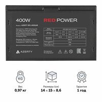 Блок питания Azerty RPL-400 – устройство с общей максимальной мощностью 400 Ватт, предназначенное для обеспечения стабильной работы в компьютерах, не предъявляющих повышенных требований к источнику, например, в офисных ПК, рабочих станциях начального уровня.