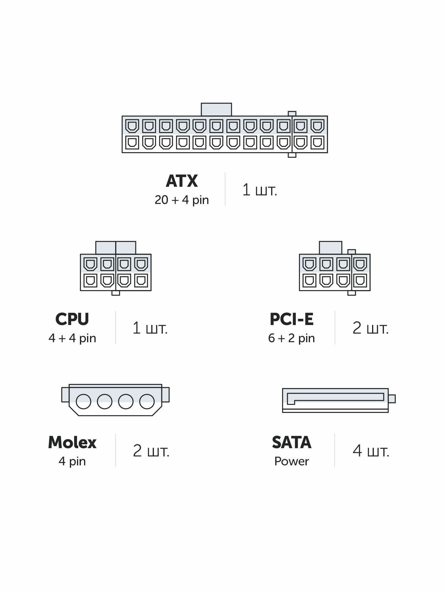 • OCP – защита от скачков и перегрузки по току отдельных линий. Помогает избежать ситуаций, когда нагрузка на одну линию может привести к перегреву или выходу из строя компонентов блока питания.