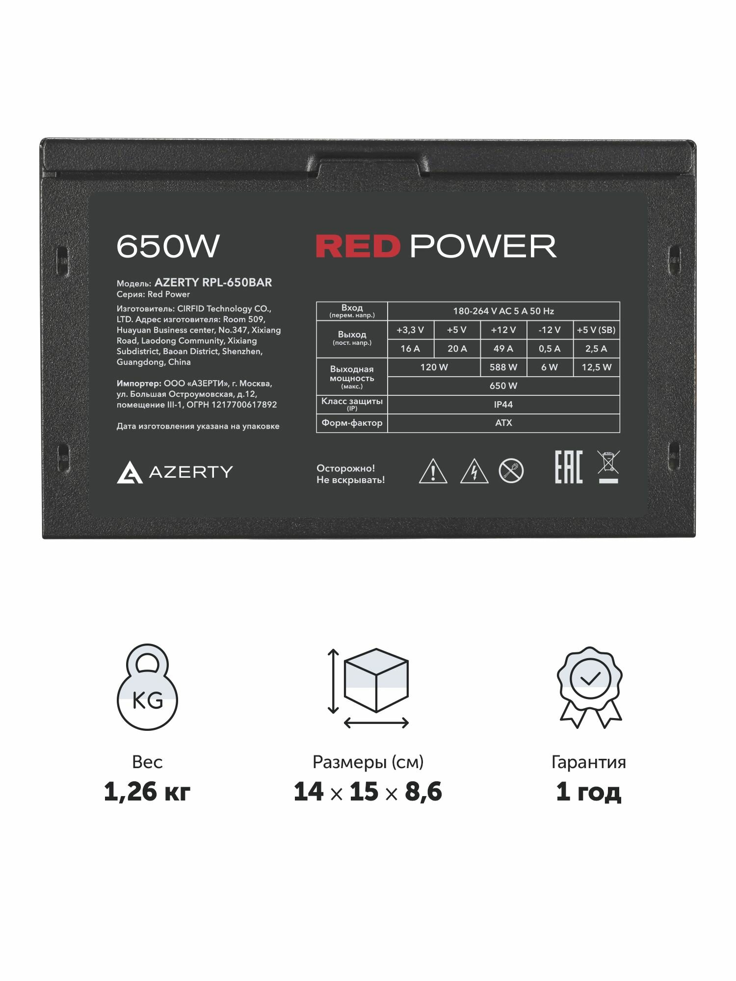 Блок питания Azerty RPL-650 — это устройство с общей максимальной мощностью 650 Ватт. Предназначен для обеспечения стабильной работы компьютеров, которым необходим относительно мощный источник питания, например, производительным офисным рабочим станциям и игровым ПК, оснащенных видеокартами среднего уровня.