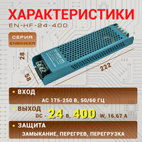 Компактный импульсный блок питания EN-HF-24-400: выходное напряжение 24 Вольт, мощность 400 Вт, выходной ток 16.7 А