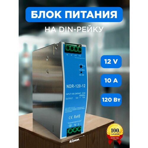 Блок питания на дин рейку NDR 120Вт, 10А, 12V - это надежное и эффективное решение для обеспечения стабильного и безопасного электроснабжения ваших устройств.