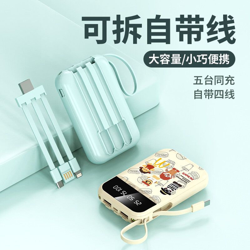 Блок питания с емкостью 20000 мАч и мультяшным дизайном в бежевом цвете.