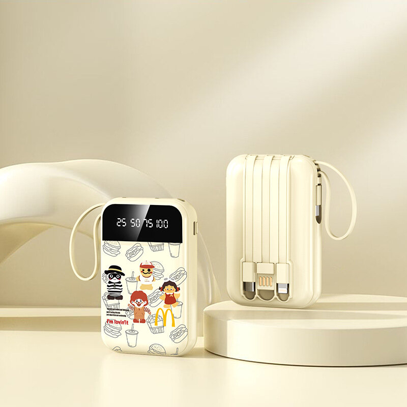Блок питания с емкостью 20000mAh и мультяшным дизайном в бежевом цвете.