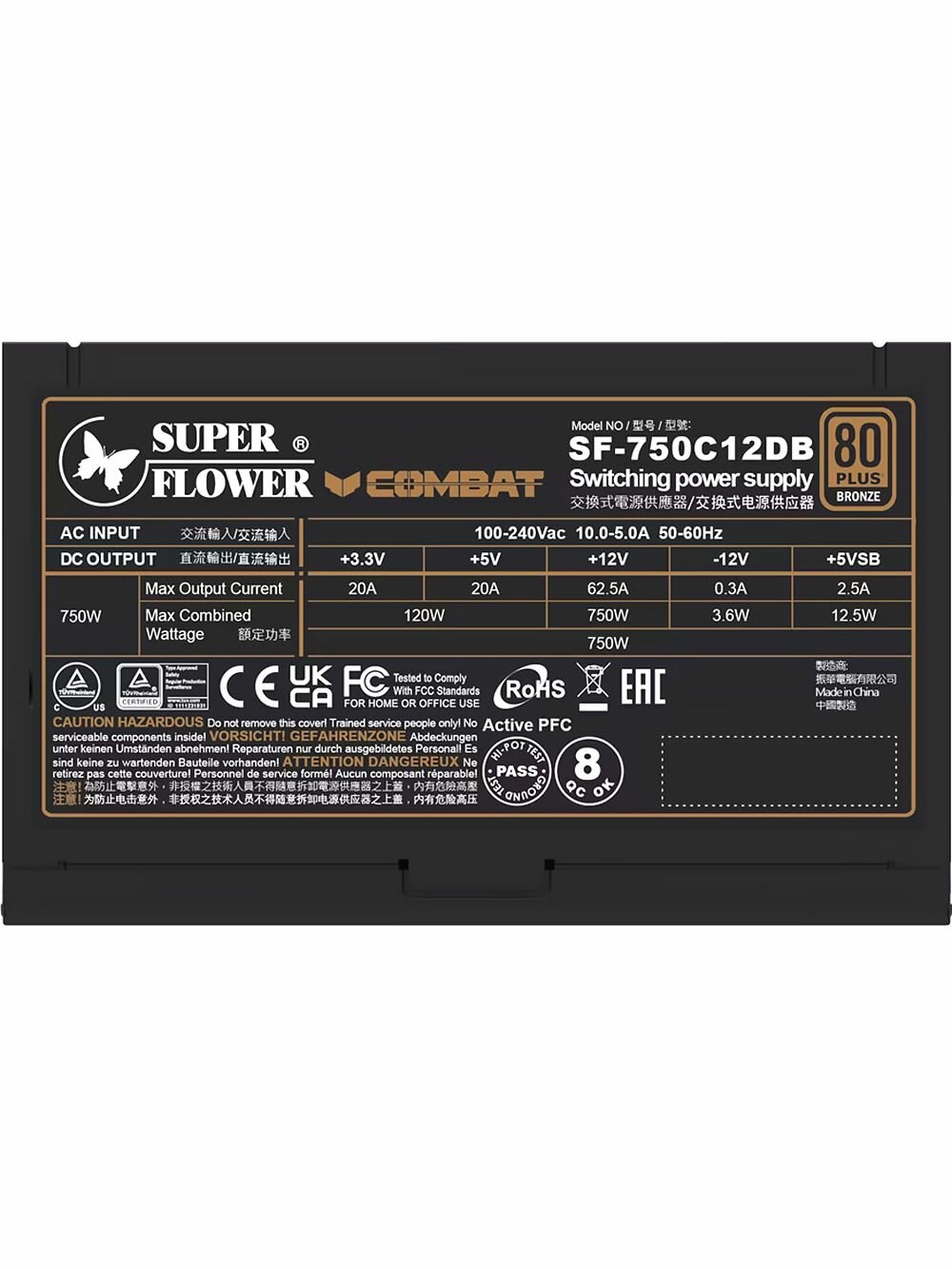Купить Блок питания Super Flower Combat DB, 750W, 80+ Bronze с доставкой по всей России. Блок питания Super Flower Combat DB, 750W, 80+ Bronze: сравнение цен, характеристики, фото, актуальное наличие и цены.