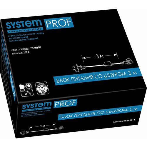 Самое главное в вопросах наружного светового декора - его безопасность. Никто не хочет сталкиваться с неприятностями в виде короткого замыкания и возгорания, которые могут привести к неожиданным последствиям. Блок питания System Prof полностью избавит вас от этой головной боли. Он изготовлен из прочных и качественных материалов, которые отлично справляются с различными внешними воздействиями осадки, низкие температуры, ветер. Блок питания предназначен для подключения к гирляндам, световым фигурам и конструкциям для обеспечения их работы. Блок питания System Prof имеет длину 3 м, подключается к электросети. Изготовлен из материалов, которые надежно защищают блок питания от внешних воздействий, перепада температур и осадков. Подходит для использования в условиях помещения и на улице. Серия System Prof включает в себя профессиональное и качественное оборудование для наружного и внутреннего освещения. Благодаря модульной конструкции, которая предполагает возможность соединения отдельных гирлянд в одно целое, можно создать стильное и необычное световое оформление, соединяющее до 3000 светодиодов. Создайте яркое нестандартное оформление своего дома вместе с серией System Prof! Достоинства и преимущества - изготовлен из прочных и надежных материалов - длина шнура 3 м, цвет шнура - черный - работает от сети Область применения Блок питания может использоваться для создания световых композиций и оформления в отапливаемых, неотапливаемых помещениях и на улице. Он необходим для обеспечения бесперебойной и безопасной работы домашних и уличных гирлянд, световых фигур и украшений.