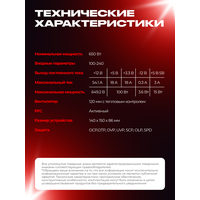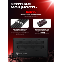 Блок питания Thunder 650W 80+Bronze ATX3.1+DC-DC+APFC+Модульный - это мощный и надежный источник питания для вашего компьютера. Блок питания имеет мощность 650 Вт, что обеспечивает стабильную работу всех компонентов вашего ПК. Благодаря этому, вы можете быть уверены в том, что ваш компьютер будет работать без сбоев и зависаний. Thunder 650W оснащен активным корректором мощности (APFC), что позволяет снизить потери мощности при передаче энергии. Это означает, что вы получаете больше энергии для ваших компонентов, что приводит к более быстрой и эффективной работе. Блок питания оснащен модульной конструкцией, что позволяет вам выбрать только те кабели, которые вам нужны. Это делает его более удобным для хранения и использования, а также упрощает процесс установки. Thunder 650W имеет 3 года гарантии, что подтверждает его высокое качество и надежность. Блок питания имеет черный цвет и весит всего 3,6 кг, что делает его легким и компактным. Система охлаждения блока питания активная, что обеспечивает эффективное охлаждение всех компонентов. Thunder 650W оснащен разъемами для материнской платы ATX 24-пин и для питания процессора 4 pin + 4 pin. Также имеются 3 разъема 4-pin Molex и 4 разъема 15-pin SATA для подключения дополнительных устройств. В комплект поставки входит гарантийный талон, что подтверждает качество и надежность данного блока питания. Выбирая блок питания Thunder 650W, вы получаете мощный, надежный и качественный источник питания для вашего компьютера.