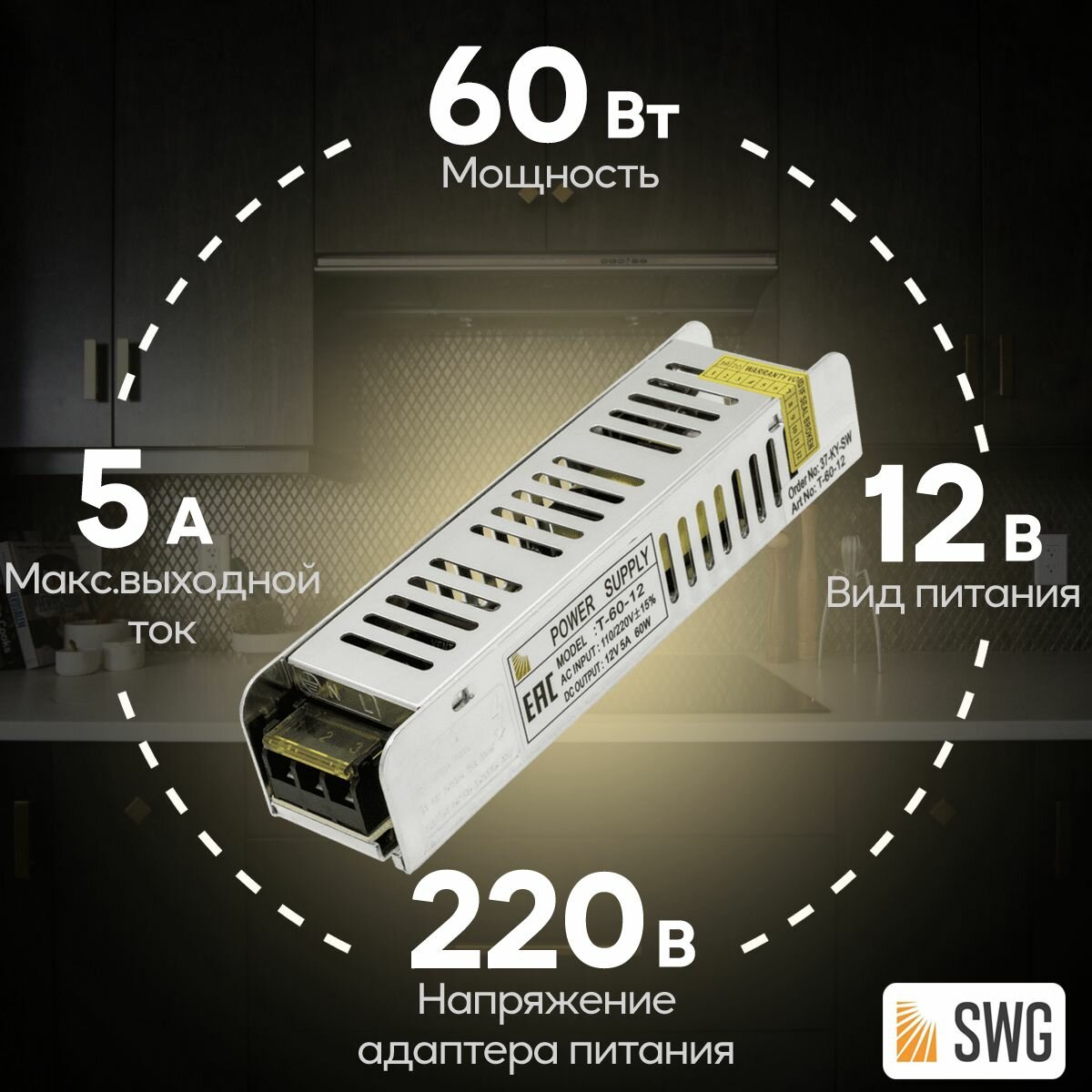SWG T-60-12 Блок питания для светодиодной ленты 12В, 60Вт, IP20: сравнение цен, характеристики, фото, актуальное наличие и цены.