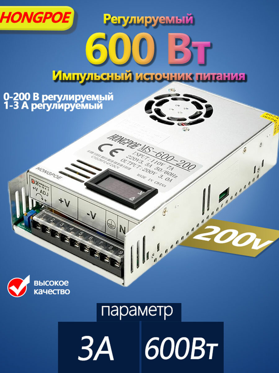 Блок питания цифровой дисплей HONGPOE MS-600-200, 200 В 3 А 600 Вт, 1 ШТ: сравнение цен, характеристики, фото, актуальное наличие и цены.