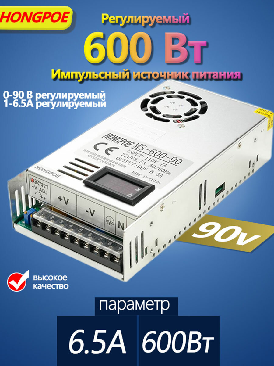 Блок питания цифровой дисплей HONGPOE MS-600-90, 90 В 6,5 А 600 Вт, 1 ШТ: сравнение цен, характеристики, фото, актуальное наличие и цены.