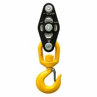 Относительно компактный блок-ролик повышенной прочности для создания полиспастных систем. Предназначен для работы с тяжелыми грузами. Оборудован стальным крюком с защелкой для закрепления груза.