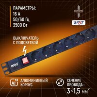 Блок розеток 19″, 8 розеток, кабель 1.8м, 1U, алюминий, выключатель 220В W&T (WT-PDU-G8): сравнение цен, характеристики, фото, актуальное наличие и цены.