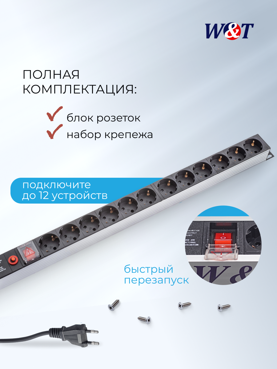 Блок розеток 19″ EURO на 12 гнезд с выключателем и защитой от перегрузки WT-2386-1U: сравнение цен, характеристики, фото, актуальное наличие и цены.