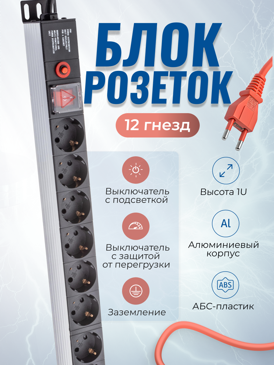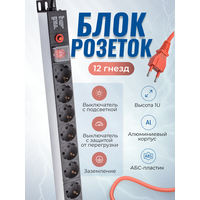 Купить Блок розеток 19″ EURO на 12 гнезд с выключателем и защитой от перегрузки WT-2386-1U с доставкой по всей России.