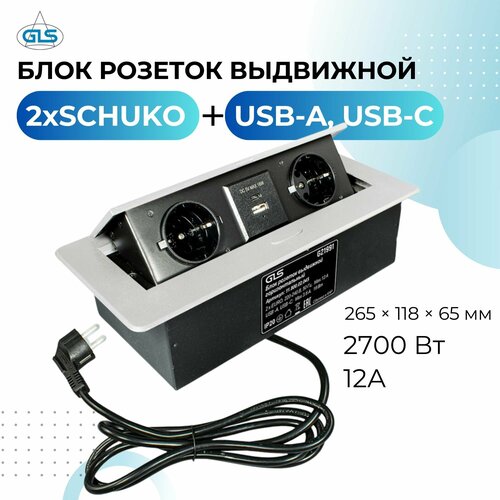 Купить Блок розеток POP-UP выдвижной горизонтальный со шнуром питания 2хSCHUKO+ USB-A, USB-C, белый с доставкой по всей России.