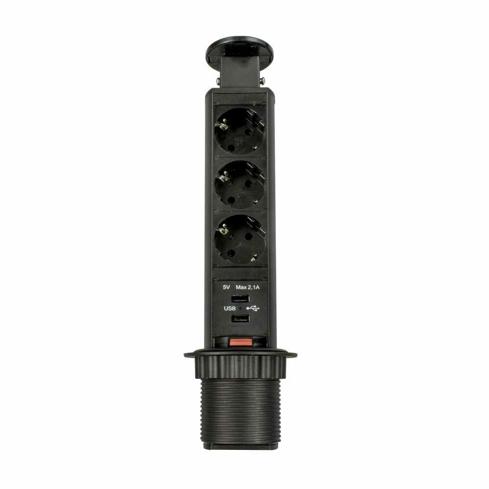 Блок розеток выдвижной GLS 3 гнезда + 2 USB черный 1,8 м
