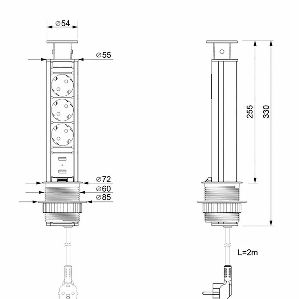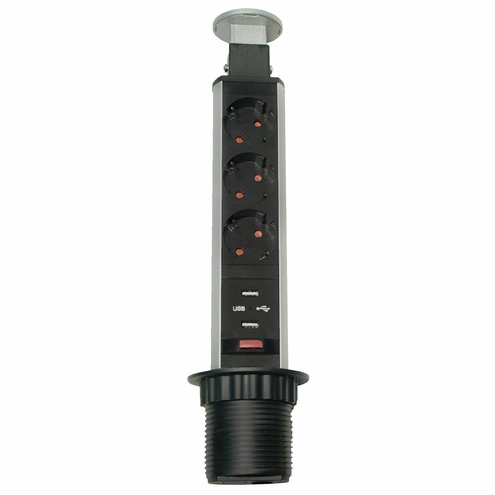 Купить Блок розеток выдвижной GLS 3 розетки с кабелем 1,8 метра + 2 USB вертикальный с доставкой по всей России.