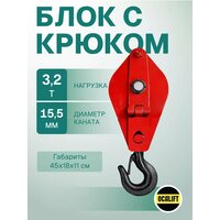 Грузоподъемность блока составляет 3.2 тонны, что делает его подходящим для работы с тяжелыми грузами. Диаметр каната составляет 15,5 мм, что обеспечивает высокую прочность и надежность при использовании.