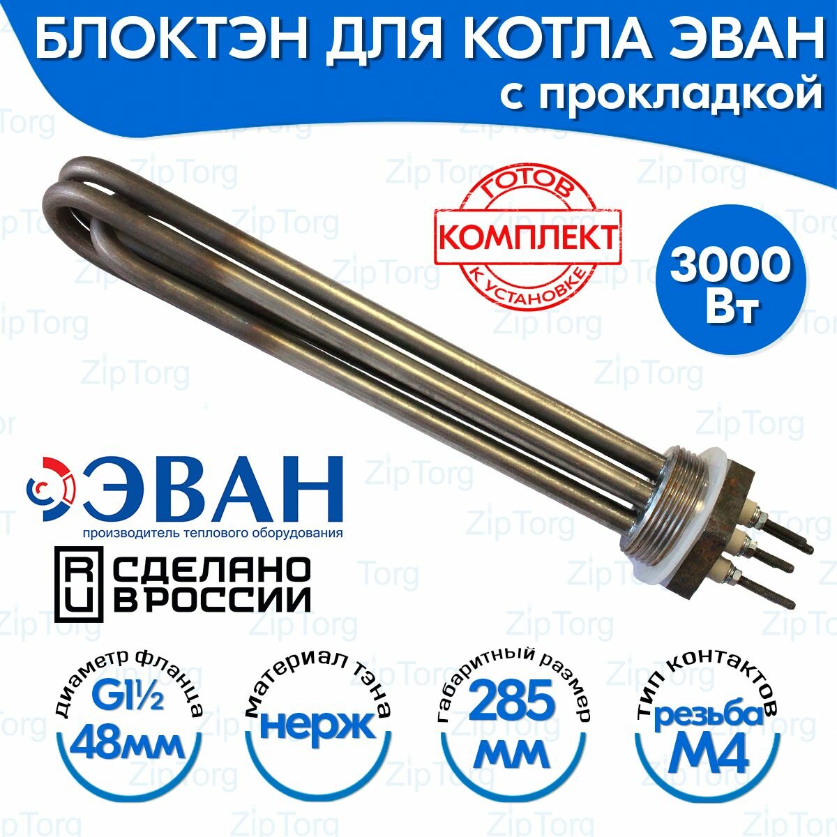 Блок Тэн для котла ЭВАН (3,0 кВт/3х220В) G1 1/2, L-285 мм (зам BA CZ 6531/002): сравнение цен, характеристики, фото, актуальное наличие и цены.